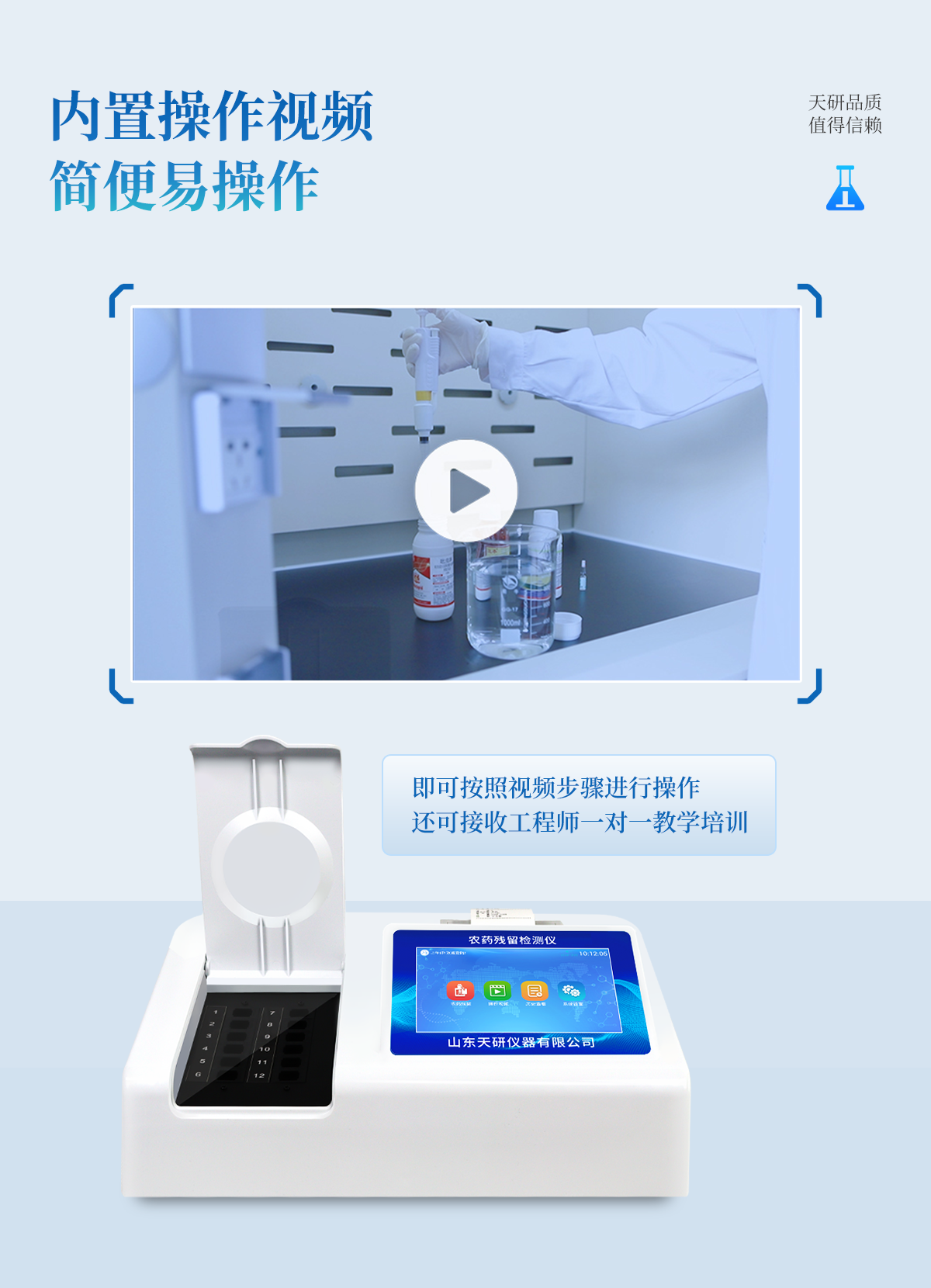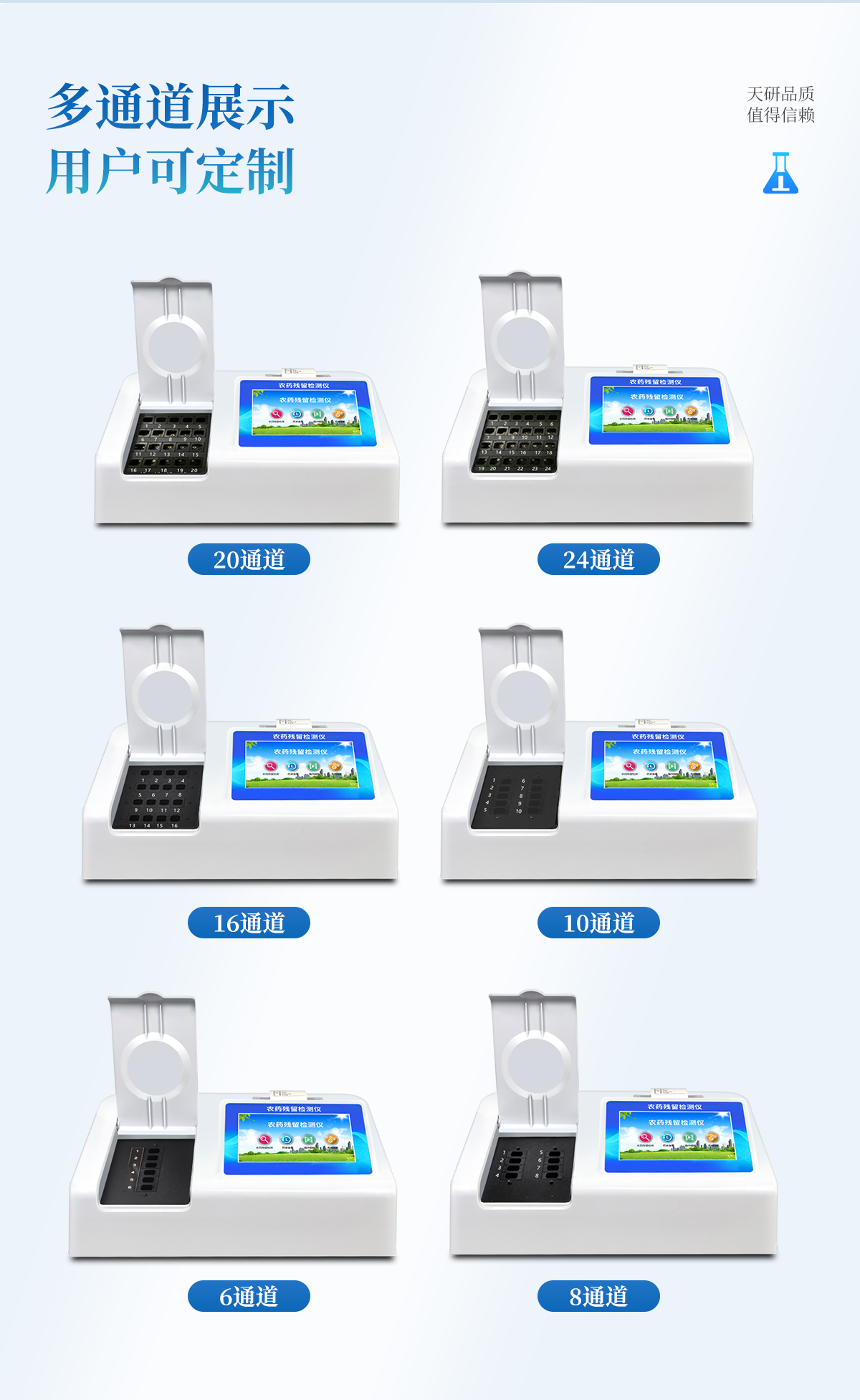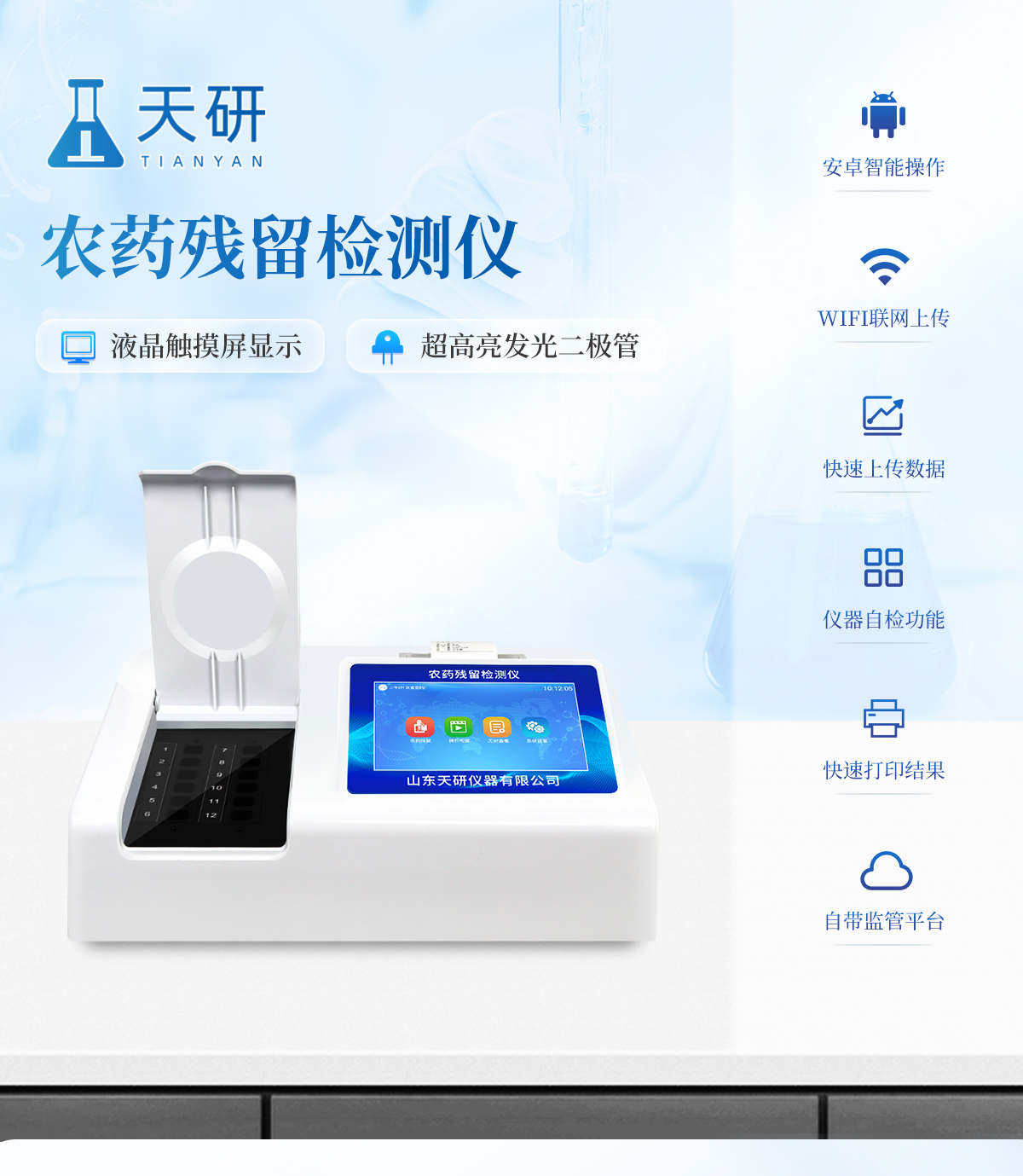 檢測標(biāo)準(zhǔn):依據(jù)國家標(biāo)準(zhǔn)方法(GB/T5009.199-2003)以及世界衛(wèi)生組織WHO、世界糧農(nóng)組織FAO殘留農(nóng)藥檢測標(biāo)準(zhǔn)、世界環(huán)境保護局EPA參照攝入量等要求來設(shè)計。采用酶抑制率比色法對水果、蔬菜等農(nóng)林產(chǎn)品中有機磷和氨基甲酸酯類農(nóng)藥含量進行快速準(zhǔn)確的檢測,乙酰膽堿酯酶和丁酰膽堿酯酶試劑均可以使用,符合國家標(biāo)準(zhǔn)和農(nóng)業(yè)部標(biāo)準(zhǔn)的要求。