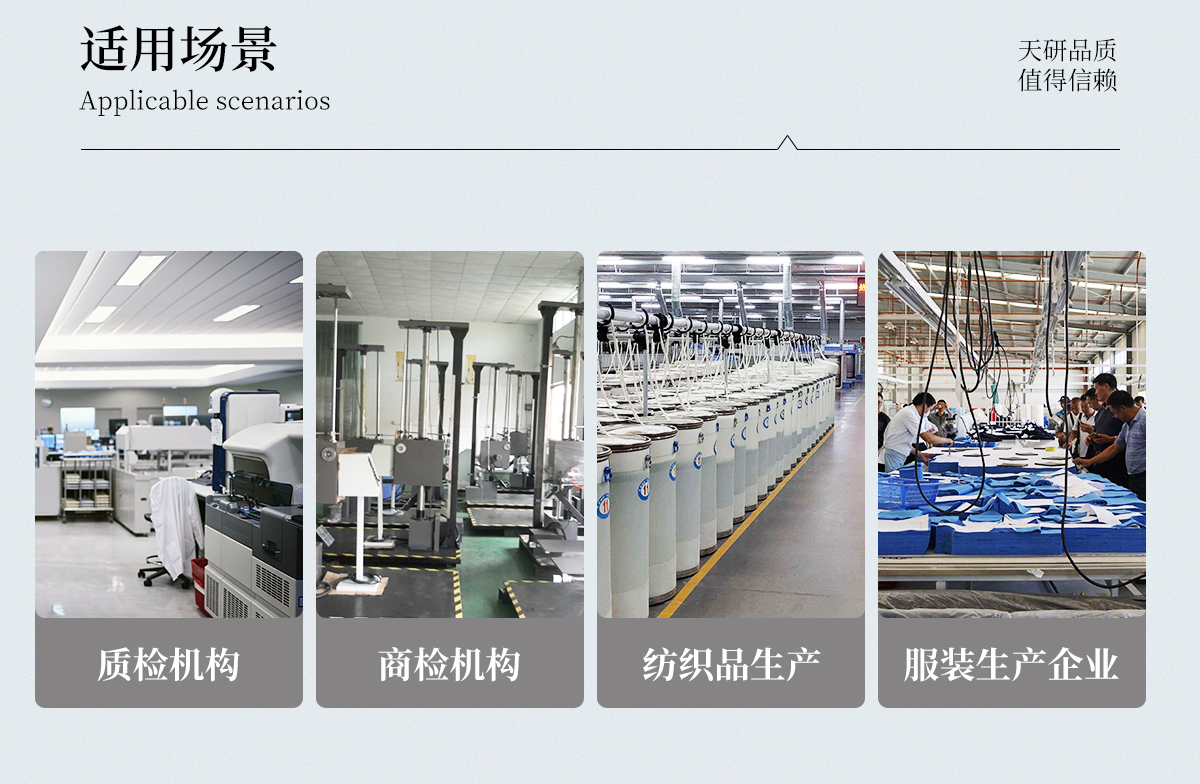 該紡織品甲醛檢測系統(tǒng)與質(zhì)檢、商檢機構(gòu)采用同樣執(zhí)行標準、檢測方法,專業(yè)為廣大紡織品、服裝等生產(chǎn)企業(yè)、質(zhì)檢商檢單位提供“一站式服務”,同時為各類紡織品甲醛實驗室提供專業(yè)的解決方案。