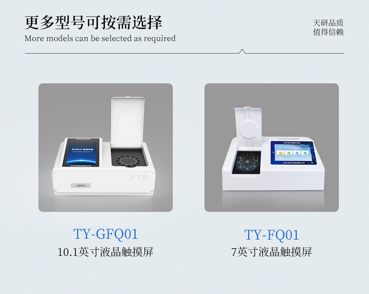 | 1、智能**且方便 | ①智能芯片:主控芯片采用ARM Cortex-A7,RK3288/4核處理器,搭配安卓智能操作系統(tǒng),集實(shí)驗(yàn)操作,分析結(jié)果,打印報(bào)告等功能于一體,使用方便,性能更強(qiáng)。 | ②大屏顯示:采用10.1英寸液晶觸摸屏,單機(jī)即可操作,無需連接外部顯示或控制器。 | ③多樣同檢:儀器具有12個(gè)檢測(cè)通道,可同時(shí)一次性檢測(cè)11個(gè)樣品,效率更高。 | ④工作預(yù)設(shè):具有任務(wù)預(yù)設(shè)模塊,一鍵提前預(yù)設(shè)樣品所有信息內(nèi)容。來樣時(shí)可直接檢測(cè),同時(shí)可多次調(diào)取。 | ⑤數(shù)據(jù)分析:設(shè)備首頁(yè)自動(dòng)匯總分析數(shù)據(jù),并繪制柱形分析圖,各項(xiàng)檢測(cè)數(shù)據(jù)一目了然,快捷直觀。 | ⑥高度集成:模塊高度集合,將分光光度模塊、數(shù)字化管理模塊、無線通訊模塊集成于一體??蓪z測(cè)結(jié)果進(jìn)行分析,直接上傳至數(shù)據(jù)平臺(tái),實(shí)現(xiàn)數(shù)據(jù)共享,方便后期進(jìn)行數(shù)據(jù)分析與統(tǒng)計(jì)。 | ⑦遠(yuǎn)程升級(jí):儀器具備遠(yuǎn)程升級(jí)功能,可遠(yuǎn)程升級(jí)程序,無需返廠,并可持續(xù)性免費(fèi)更新系統(tǒng)版本,降低成本及運(yùn)輸損耗風(fēng)險(xiǎn)。 | 2、檢測(cè)精準(zhǔn)且直觀 | ①**技術(shù):精密旋轉(zhuǎn)比色池,使用同芯片同光源校準(zhǔn)精度,解決不同光源之間存在波長(zhǎng)誤差的問題,更加準(zhǔn)確**。 | ②結(jié)果直觀:儀器自動(dòng)對(duì)檢測(cè)結(jié)果與國(guó)標(biāo)限量值進(jìn)行對(duì)比,自動(dòng)判定結(jié)果是否合格,結(jié)果更直觀。 | 3、功能強(qiáng)大且實(shí)用 | ①存儲(chǔ)功能:設(shè)備可以存儲(chǔ)數(shù)據(jù)100000組,可在屏幕上直觀查看歷史數(shù)據(jù),可導(dǎo)出數(shù)據(jù)。 | ②打印功能:設(shè)備自帶打印功能,可對(duì)樣品信息及檢測(cè)結(jié)果無限次隨意打印。 | ③全新方式:新創(chuàng)自定義打印方式,可按需靈活勾選控制:二維碼,抽樣信息、檢測(cè)信息,受檢信息、復(fù)核信息、抽樣日期、檢測(cè)日期等信息的打印 | ④多重編輯:樣品信息可多重編輯,可以對(duì)每個(gè)通道屬性和樣品信息單獨(dú)進(jìn)行編輯,例如樣品信息、抽樣信息、檢測(cè)信息,受檢信息、復(fù)核信息、抽樣日期、檢測(cè)日期等信息等。 | ⑤雙語設(shè)計(jì):全中文/英文操作菜單,簡(jiǎn)單實(shí)用,適用于不同用戶的需求。 |