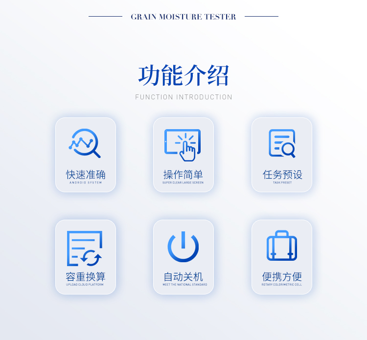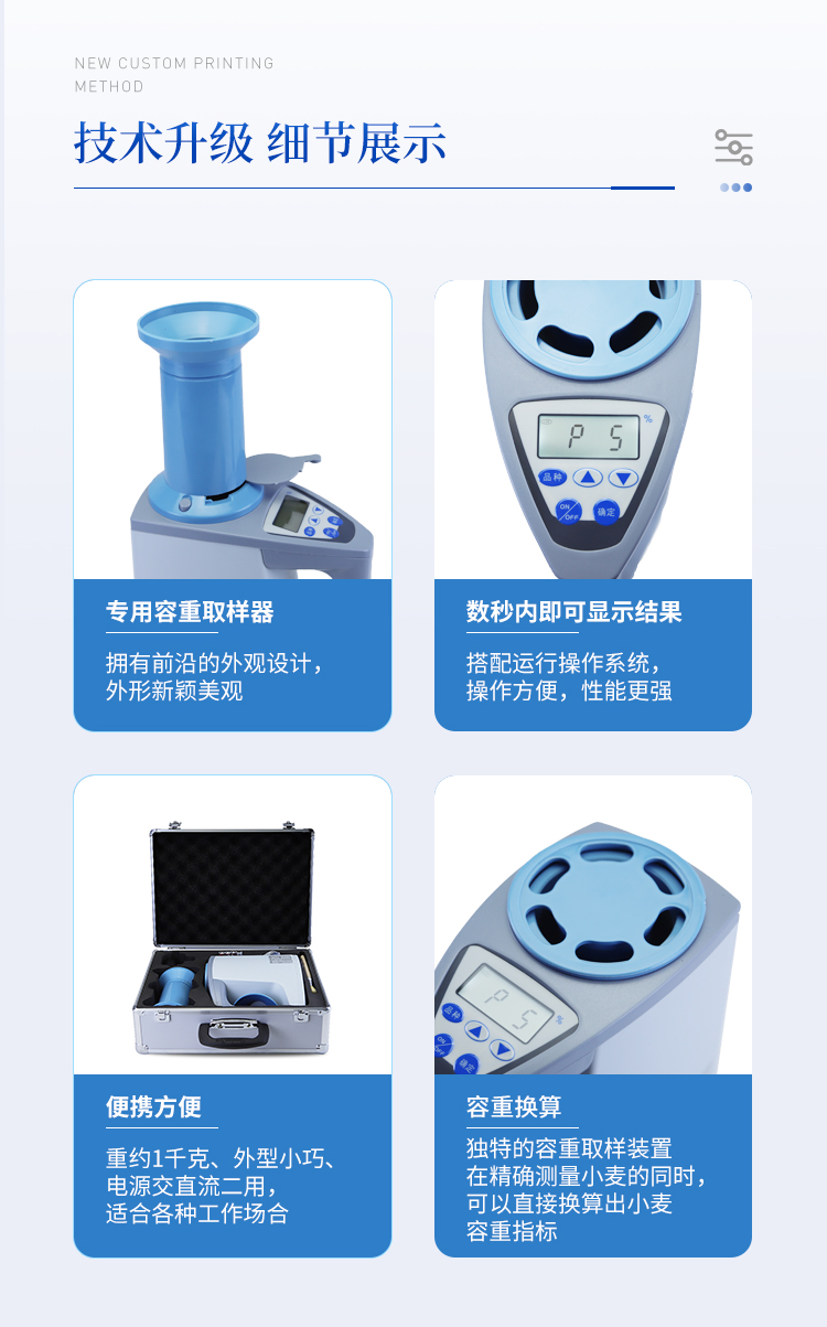 容重?fù)Q算:獨(dú)特的**容重取樣裝置在**測(cè)量小麥的同時(shí),可以直接換算出小麥容重指標(biāo)。