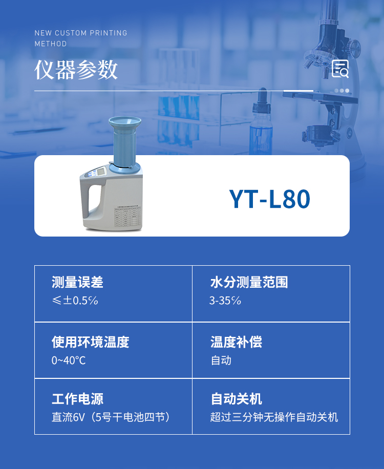 TY-L80型糧食水分測(cè)定儀是老型糧食水分測(cè)定儀的升級(jí)產(chǎn)品、在原來(lái)的基礎(chǔ)上增加了自動(dòng)累加測(cè)量次數(shù),計(jì)算平均值功能和容量自動(dòng)換算顯示功能,其性能更穩(wěn)定可靠,擁有外觀設(shè)計(jì)國(guó)家**,外形新穎美觀,完**與國(guó)外同類(lèi)產(chǎn)品媲美,是水分測(cè)量?jī)x器理想的升級(jí)換代產(chǎn)品。