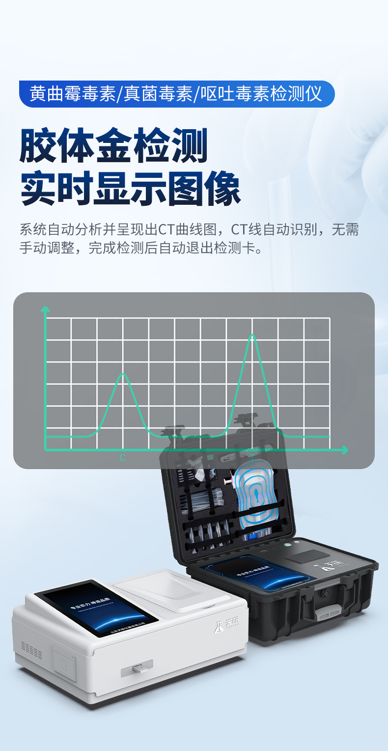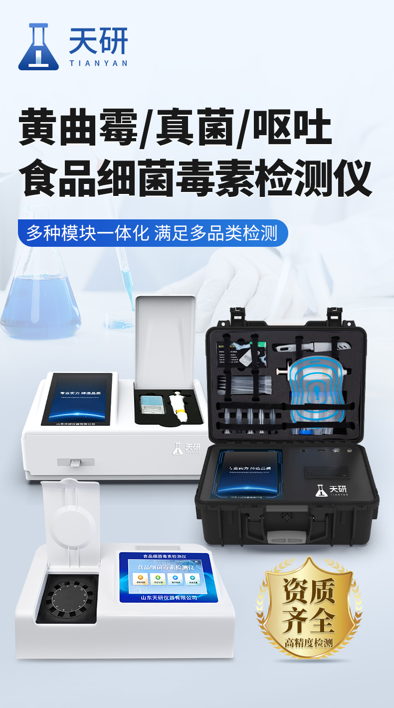 山東天研儀器有限公司生產(chǎn)的真菌毒素檢測儀應(yīng)用競爭抑制免疫層析的技術(shù)原理,通過就是通過待檢測物與抗體結(jié)合的方法,分析待檢樣品中真菌毒素殘留。可快速檢測糧食、飼料、谷物、食用油、調(diào)味品中如玉米、大米、小麥、大麥、糙米、麩皮、稻谷、豆粕、米糠、飼料中的黃曲霉毒素B1、M1、總量,玉米赤霉烯酮、嘔吐毒素、T2毒素、赭曲霉毒素、伏馬毒素等。