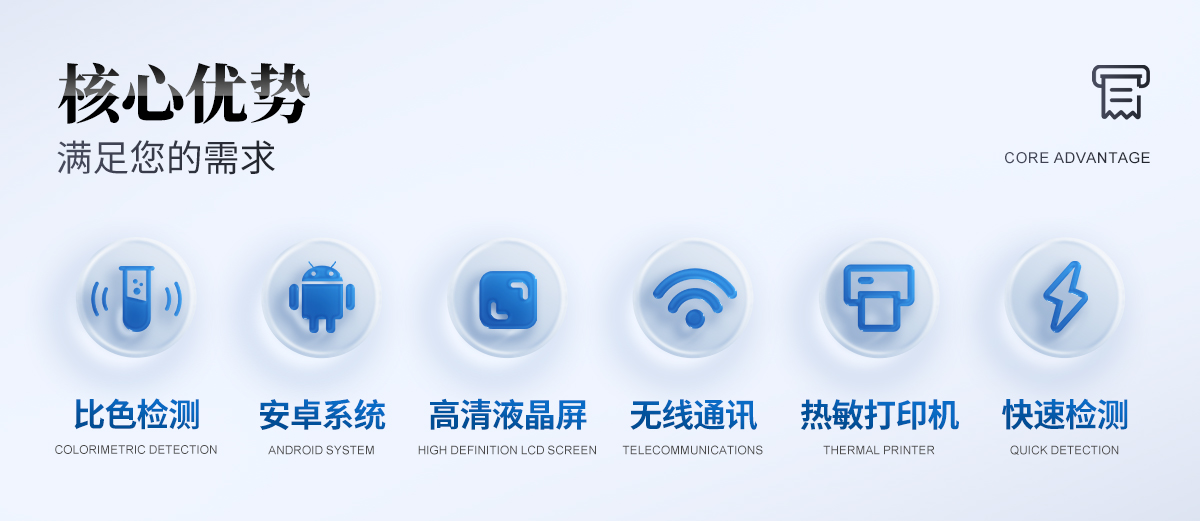 | 檢測方法:光電比色 | 測試模式:濃度 | 波長范圍:340~800nm | 系統:安卓智能操作系統 | 波長選擇:自動 | 顯示屏幕:3.5寸彩色液晶屏 | 穩(wěn)定性:<0.5% | 靈 敏 度(吸光度):0.001 | 使用環(huán)境:0~50℃ 0~90%的相對濕度 | 數據存儲:80000條以上 | 通訊:Type-C、WIFI、藍牙 | 電池:5600mAh鋰電池 | 連續(xù)工作時間:12小時 | 供電電壓:5V/DC直流 | 尺寸:18cm*8cm | 重量:700g | 支持語言:簡體中文或英文 |