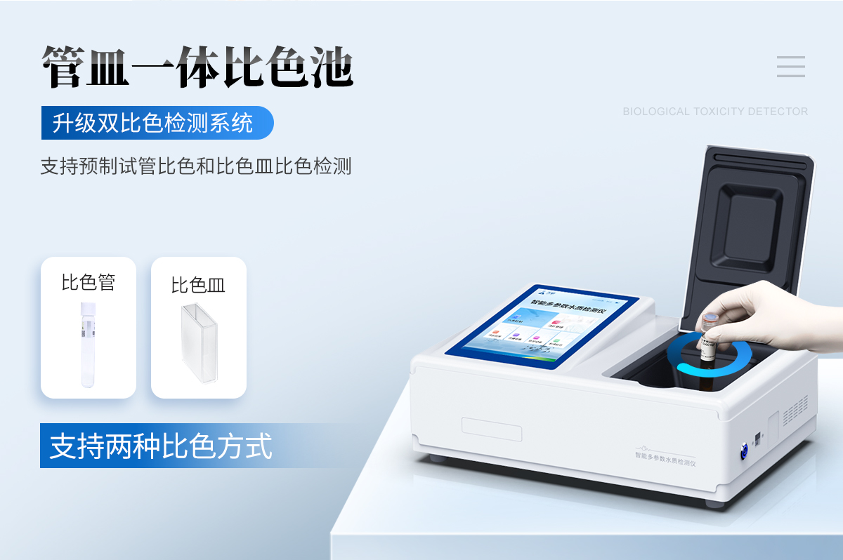 提取一定量水體樣品,經過前處理后根據不同檢測項目按照試劑說明書滴入檢測試劑,檢測試劑會與水體中的待測物質發(fā)生反應,反應液呈現特定的顏色。