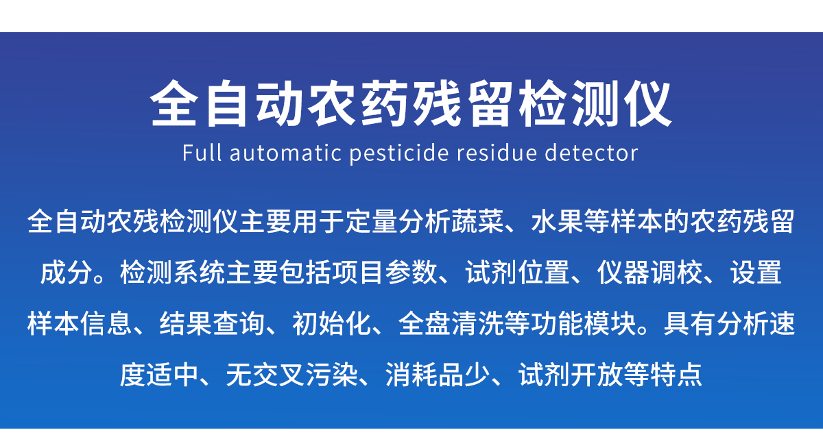 產(chǎn)品簡(jiǎn)介: 天研全自動(dòng)農(nóng)藥殘留檢測(cè)儀YT-NY2000,檢測(cè)標(biāo)準(zhǔn):依據(jù)國家標(biāo)準(zhǔn)方法(GB/T5009.199-2003)以及世界衛(wèi)生組織WHO、世界糧農(nóng)組織FAO殘留農(nóng)藥檢測(cè)標(biāo)準(zhǔn)、世界環(huán)境保護(hù)局EPA參照攝入量等要求來設(shè)計(jì)。采用酶抑制率比色法對(duì)水果、蔬菜等農(nóng)林產(chǎn)品中有機(jī)磷和氨基甲酸酯類農(nóng)藥含量進(jìn)行快速準(zhǔn)確的檢測(cè)。 廣
