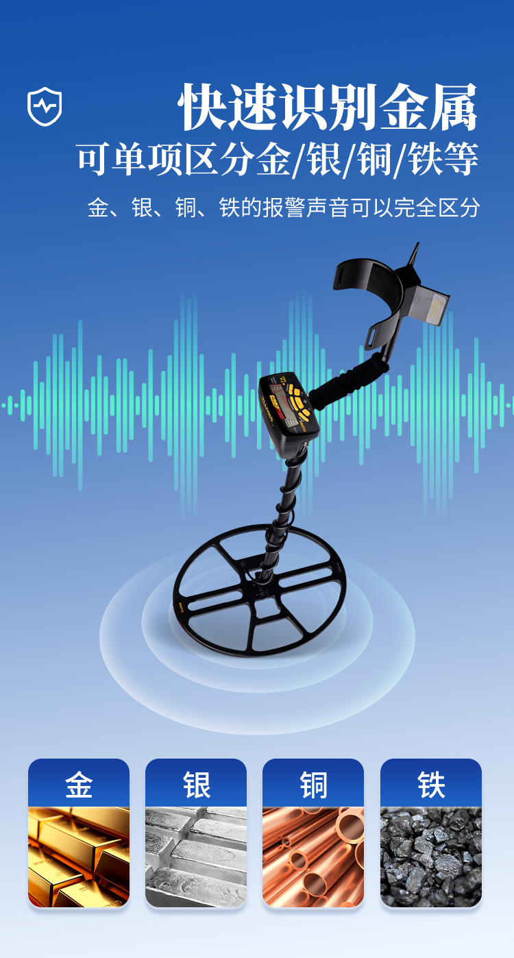 | ●外殼采用高強(qiáng)度ABS工程塑料,具有強(qiáng)度高、重量輕、壽命長; | ●能有效準(zhǔn)確區(qū)別黑色金屬和有色金屬功能; | ●可以排除黑色金屬(鋼鐵)只探測有色金屬(金、銀、銅) | ●設(shè)有地平衡線路,能消除“礦化反應(yīng)”帶來的影響,有效提高探測的深度及準(zhǔn)確率; | ●具有欠壓工作報警裝置; | ●采用重復(fù)的充電電池進(jìn)行工作; | ●通過喇叭或耳機(jī)識別探測金屬聲音。 |