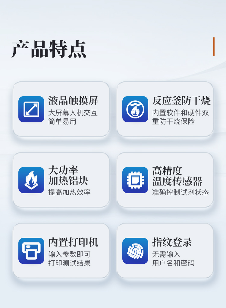 | 1. ☆采用濾袋技術(shù),濾袋孔徑25μm | 2. 耐腐蝕、耐高壓、特殊處理消煮鍋,安全可靠,經(jīng)久耐用 | 3. 彩色液晶觸摸屏,界面簡(jiǎn)潔,操作簡(jiǎn)單 | 4. **批處理能力,批處理能力為30個(gè)/批,效率高,節(jié)省試劑 | 5. 手動(dòng)根據(jù)樣品數(shù)量添加試劑,降低使用成本 | 6. ☆**間歇攪拌技術(shù),模擬手工攪拌,使樣品處理更均勻,攪拌徹底、均勻,無(wú)試劑漏液風(fēng)險(xiǎn),安全可靠,攪拌速度15圈/分鐘,間歇周期1分鐘 | 7. 全面的監(jiān)控配置,包括試劑量、溫度、壓力監(jiān)測(cè) | 8. ☆儀器采用高壓密閉測(cè)試,無(wú)需冷卻水,節(jié)水環(huán)保 | 9. 儀器可以直接在普通實(shí)驗(yàn)室環(huán)境,無(wú)需通風(fēng)櫥 | 10. 儀器內(nèi)部無(wú)危險(xiǎn)的玻璃材質(zhì)器件,安全可靠 |