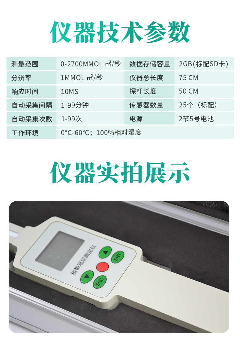 | 魚眼鏡頭可自動(dòng)保持水平狀態(tài):專門為植物冠層結(jié)構(gòu)測(cè)量設(shè)計(jì)的小型魚眼攝像鏡頭安裝在手持式萬向平衡接頭上,可自動(dòng)保持鏡頭處于水平狀態(tài),無需三角架; | 魚眼鏡頭可以伸入至冠層中:鏡頭安裝在搖臂一端,由于小巧和帶有測(cè)量桿,可以方便地水平向前或垂直向上伸入到冠層不同高度處,快速地進(jìn)行分層測(cè)量,測(cè)出群體內(nèi)光透過率和葉面積指數(shù)垂直分布圖; | 圖像分析軟件:圖像分析軟件可以任意定義圖像分析區(qū)域(天頂角可分10區(qū),方位角可分10區(qū))。 | 可屏蔽不合理冠層部分:對(duì)不同方向的冠層進(jìn)行區(qū)域性分析時(shí),可以任意屏蔽地物景象和不合理的冠層部分(如缺株、邊行問題等)。對(duì)不同天頂角起始角和終止角的選擇,可以避開不符合計(jì)算該冠層結(jié)構(gòu)參數(shù)的冠層孔隙條件,通過手動(dòng)調(diào)節(jié)閾值,可以更精準(zhǔn)的測(cè)量出葉面積指數(shù)等參數(shù); | 可測(cè)量指標(biāo) | 葉面積指數(shù) | 葉片平均傾角 | 天空散射光透過率 | 不同太陽高度角下的植物冠層直射輻射透過率 | 不同太陽高度角下冠層的消光系數(shù) | 葉面積密度的方位分布 |