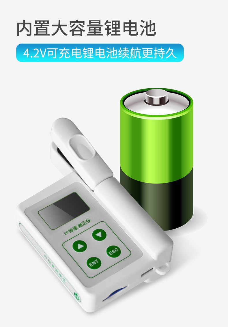 | 數(shù)據(jù)測(cè)量:**的測(cè)量精度和重復(fù)性(精度:± 1.0 SPAD,重復(fù)性:±0.3 SPAD) ,媲美進(jìn)口品牌,或可根據(jù)已知葉綠素含量的葉片或標(biāo)準(zhǔn)試樣客戶自行校準(zhǔn) | 數(shù)據(jù)分組:儀器可將數(shù)據(jù)自動(dòng)分組,并可自動(dòng)計(jì)算每組數(shù)據(jù)的平均值。可將同一葉片測(cè)量的數(shù)據(jù)自動(dòng)分為一組,便于查看每次測(cè)量數(shù)據(jù)及這一組數(shù)據(jù)的平均值,有效的避免了不同葉片的測(cè)量數(shù)據(jù)混淆。采用16GB超大存儲(chǔ),所以分組數(shù)量和每組的數(shù)據(jù)不受限制 | 數(shù)據(jù)存儲(chǔ): 16GB超大存儲(chǔ)空間,數(shù)據(jù)存儲(chǔ)量巨大 | 數(shù)據(jù)瀏覽:可在儀器上隨時(shí)瀏覽測(cè)量的數(shù)據(jù)、每組數(shù)據(jù)的平均值和刪除異常數(shù)值。數(shù)據(jù)情況更加直觀 | 數(shù)據(jù)導(dǎo)出:多功能USB接口,可實(shí)現(xiàn)數(shù)據(jù)導(dǎo)出與充電功能,可將儀器與電腦直接聯(lián)機(jī),數(shù)據(jù)以EXCEL格式導(dǎo)出,無(wú)需上位機(jī)軟件,操作簡(jiǎn)單方便 | 顯示:高對(duì)比度LCD顯示屏,強(qiáng)光下也可清晰顯示數(shù)據(jù) | 測(cè)量迅速、簡(jiǎn)便:測(cè)量時(shí)只需要將葉片插入并合上測(cè)量探頭即可,不需要采摘葉片,不影響作物正常生長(zhǎng),可以在作物的生長(zhǎng)過(guò)程中全程對(duì)特定的葉片進(jìn)行監(jiān)測(cè),從而得到更科學(xué)的分析結(jié)果 | 電池消耗:低功耗模式設(shè)計(jì),內(nèi)置大容量鋰離子充電電池,節(jié)能環(huán)保并方便進(jìn)行戶外操作 | 儀器充電:**的充電管理設(shè)計(jì),可適配多數(shù)的USB口(5V)充電器,具有防過(guò)充功能 | 易攜帶:250g的重量,方便攜帶到田間進(jìn)行活體測(cè)量 |