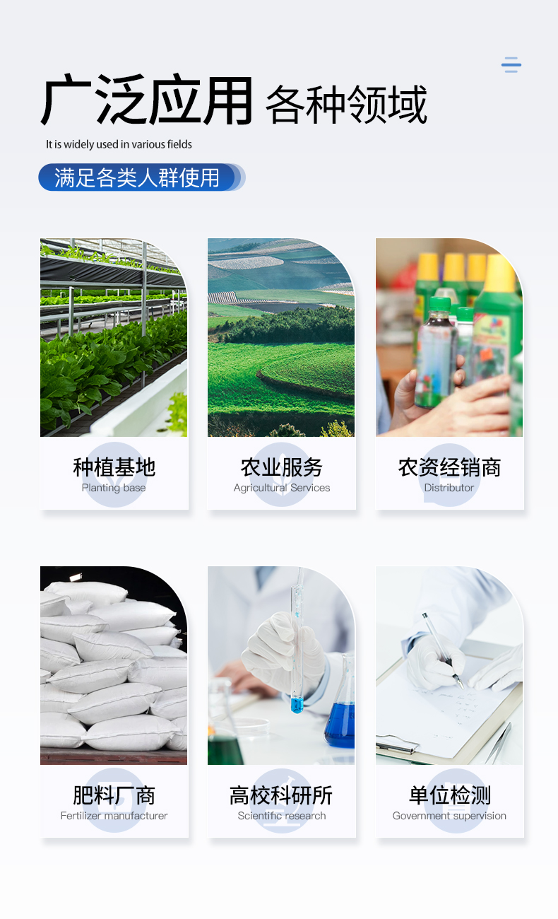 | 儀器測定項目:測定土壤、肥料、食品、蔬菜、水果中重金屬(鉛、砷、鉻、鎘、汞、鐵、鋅、錳、銅)。 | 儀器擴展測試項目:儀器可以擴展測定土壤、肥料養(yǎng)分含量。 |