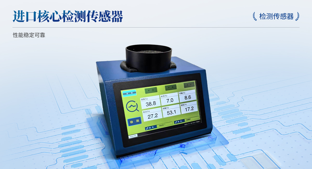 近紅外光譜分析儀,是針對原糧、食品、飼料等行業(yè)開發(fā)的專用 檢測設(shè)備,可無損、快速、準(zhǔn)確地檢測樣本的水分、脂肪、蛋白質(zhì)等多種指標(biāo)。