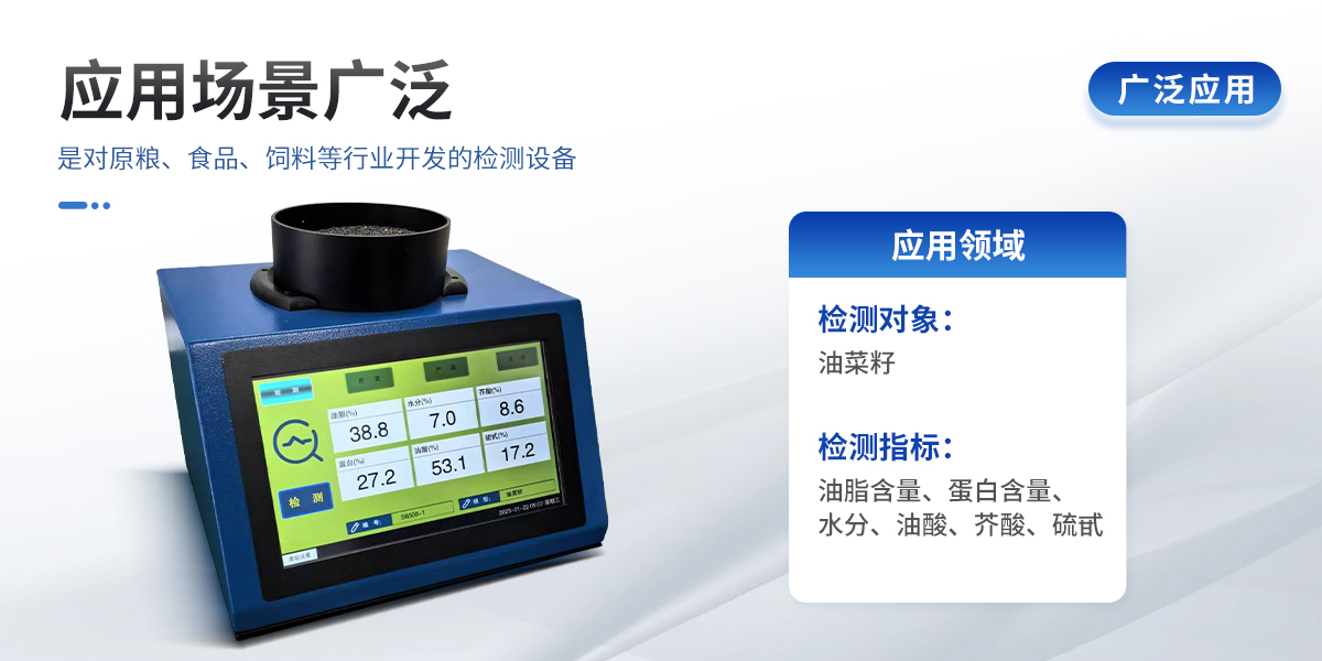 近紅外油菜籽檢測(cè)儀,是針對(duì)原糧、食品、飼料等行業(yè)開發(fā)的專用 檢測(cè)設(shè)備,可無損、快速、準(zhǔn)確地檢測(cè)樣本的水分、脂肪、蛋白質(zhì)等多種指標(biāo)。