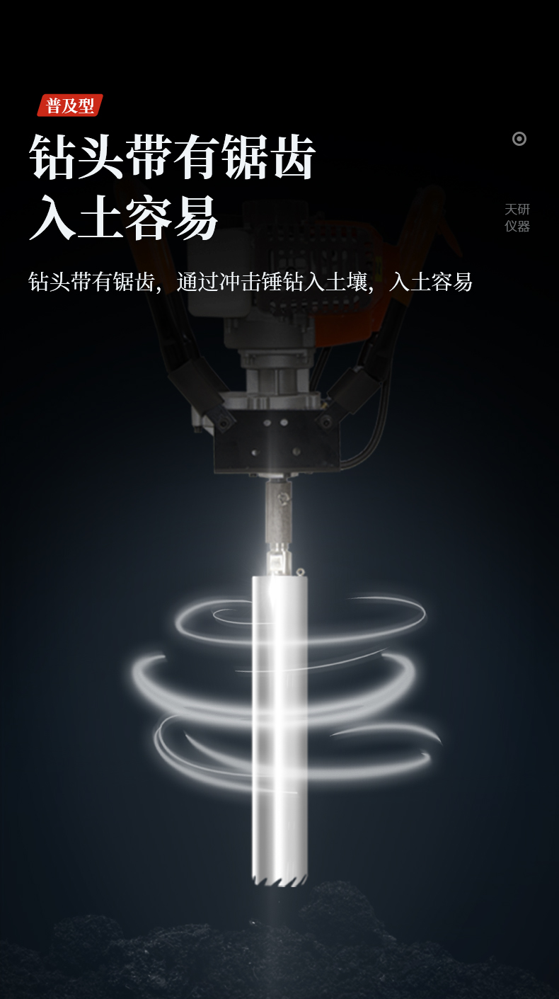 | 旋轉(zhuǎn)式,上下沒有擾動(dòng),不會(huì)破壞土壤剖面結(jié)構(gòu) | 采樣量大,插銷連接,易于拆卸。 | 鉆頭帶有鋸齒,通過沖擊錘鉆入土壤,入土容易。 | 筒型鉆頭獨(dú)特可拆卸裁口設(shè)計(jì),取樣容易。 | 樣品處于比較寬松的柱狀圓筒中,取出十分容易 | 狀土壤很難被壓縮(保持原狀) | 采集一個(gè)樣本就可以研究整個(gè)土壤剖面情況 | 比開挖一個(gè)采樣坑要節(jié)約時(shí)間和減少樣本破壞 | 可有效地用于所有類型的土壤 |