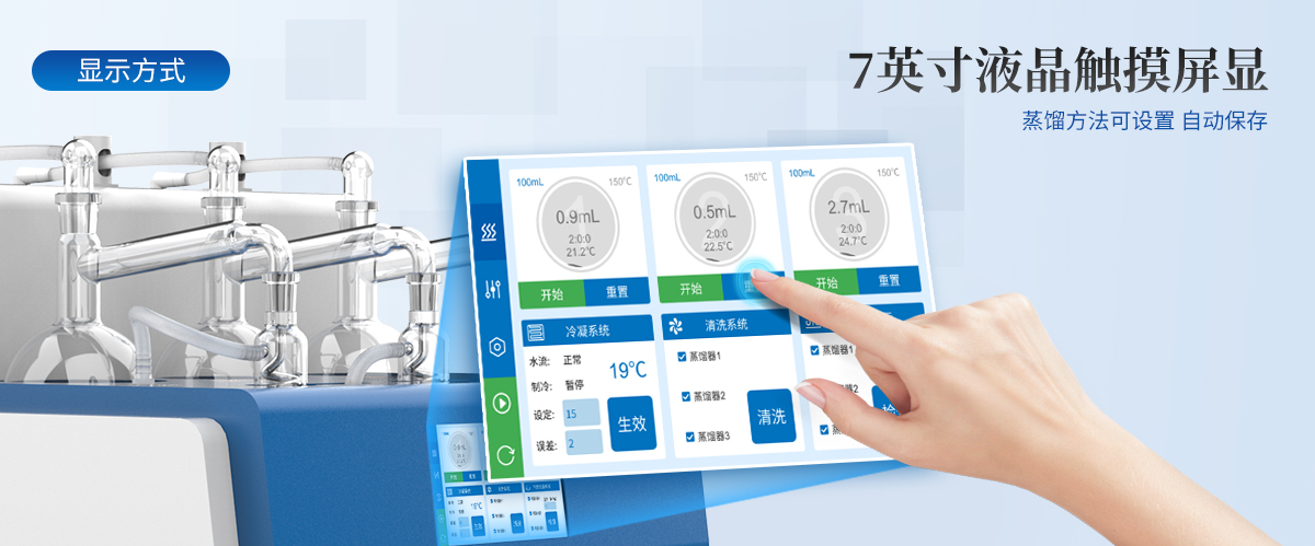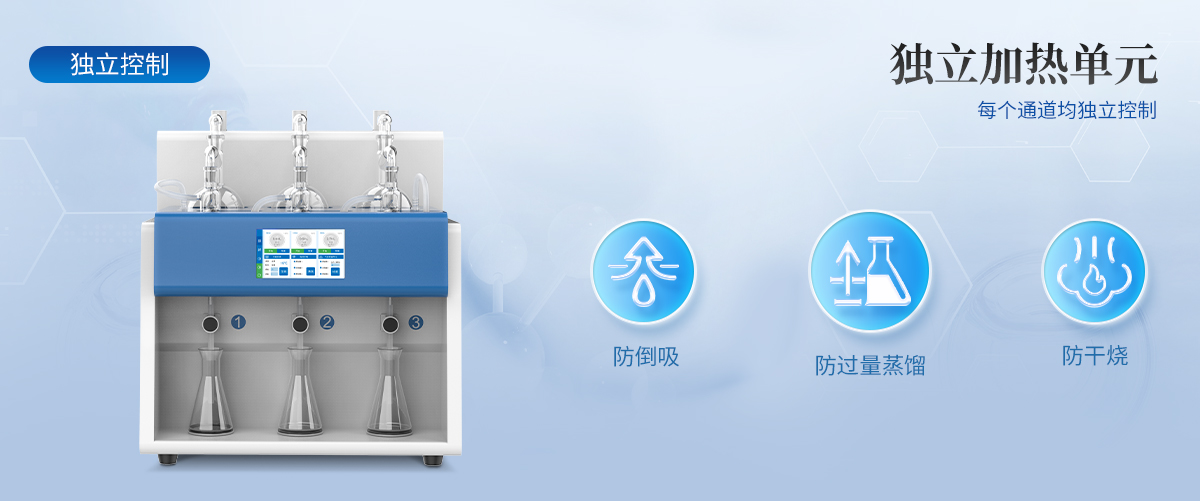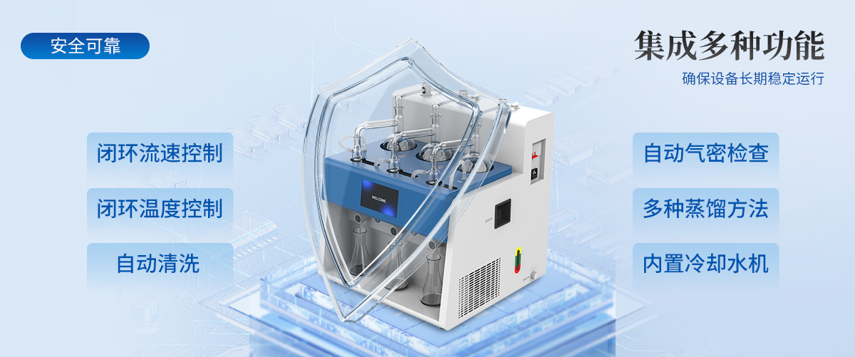 | 1.自動化程度高:內(nèi)置冷卻水循環(huán)機,實現(xiàn)全自動化操作,提高實驗效率與準確性。 | 2.多通道獨立控制:3個加熱單元各自獨立,配備防倒吸、防過量蒸餾及防干燒保護。 | 3.智能觸控:7寸液晶觸摸屏,支持自定義保存*多1000種蒸餾方法,內(nèi)置18種國標方法。 | 4.精準控制:采用**陶瓷遠紅外加熱,具備時間與重量雙重終點控制,確保蒸餾精度達0.1ml。 | 5.安全可靠:集成自動清洗、自動氣密檢查、反吹等功能,確保設(shè)備長期穩(wěn)定運行。 | 6.操作簡便:一鍵啟動,支持遠程OTA系統(tǒng)升級,滿足不同用戶的使用需求。 |