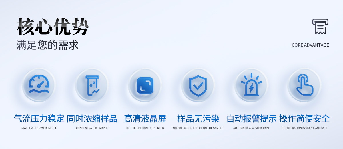 | 1、全自動(dòng)氮?dú)鉂饪s儀能同時(shí)濃縮單個(gè)或多個(gè)樣品,毋需人工值守:全自動(dòng)氮?dú)鉂饪s儀采用多個(gè)光學(xué)傳感器監(jiān)控每個(gè)樣品的濃縮過程,當(dāng)蒸發(fā)濃縮至預(yù)設(shè)體積時(shí),系統(tǒng)自動(dòng)停止相應(yīng)通道的氮?dú)獯祾?,并?bào)警提示。整個(gè)濃縮過程無需人工看管; | 2、特別的氣流吹掃軌跡及緩沖設(shè)計(jì):可加速溶劑蒸發(fā)濃縮、防止溶劑噴濺損失; | 3、工作參數(shù)任意設(shè)置、控制和實(shí)時(shí)顯示:主要工作參數(shù):氮吹壓力、水浴溫度和工作時(shí)間,均可按需設(shè)置。 | 4、氮吹氣流壓力穩(wěn)定、恒定:儀器自帶自動(dòng)調(diào)壓裝置,氣流壓力可自動(dòng)控制并保持恒定,不受工作通道(樣品)突然開啟、關(guān)閉或數(shù)量的影響; | 5、樣品無污染影響:所有氣路及相關(guān)器件均采用經(jīng)過驗(yàn)證的零污材料,避免樣品受到來自儀器的污染; | 6、操作簡便、安全:靈活的工作參數(shù)設(shè)定、方便的樣品置入/取出過程,易學(xué)易用;全封閉設(shè)計(jì)以及儀器自帶的強(qiáng)力排風(fēng)系統(tǒng)配置,可避免水浴蒸汽和有機(jī)揮發(fā)組份對(duì)儀器及操作人員的影響。 |