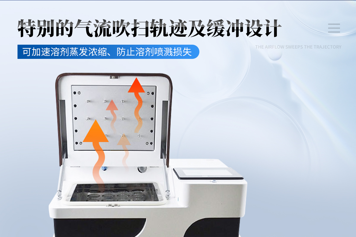 該設(shè)備采用獨(dú)特的濃縮方式大幅提高濃縮速率。同時(shí),設(shè)備利用自帶抽氣風(fēng)扇將蒸發(fā)之廢氣由排氣管路定向排出,使得原本必須置于通風(fēng)廚中的氮吹濃縮裝置可安全的安裝于一般實(shí)驗(yàn)平臺(tái)上。不僅移動(dòng)容易,節(jié)約實(shí)驗(yàn)室成本,而且減輕了有毒有害溶劑對(duì)操作人員的傷害。是實(shí)驗(yàn)室樣品前處理裝置。