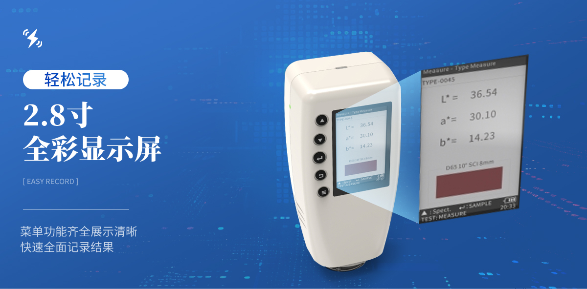 2.8寸全彩顯示屏,可輕松查閱400-700nm每個(gè)波段的光譜曲線。 菜單功能齊全展示清晰,快速全面記錄結(jié)果。 顏色標(biāo)記色差顯示結(jié)果,合格與否一眼便知。 UI設(shè)計(jì)清晰明了,不再擔(dān)心誤操作。