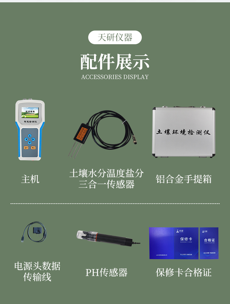| 測(cè)量參數(shù):土壤容積含水量; 單位:%(m3/m3); 測(cè)試靈敏度:±0.01 %(m3/m3); | 量程:0-100%(m3/m3) 測(cè)量精度:0-50%(m3/m3)范圍內(nèi))±2%(m3/m3); | 50-100%(m3/m3)范圍內(nèi))±3%(m3/m3); 分辨率:0.1% | 土壤溫度范圍:-40-120℃ 測(cè)量精度:±0.2℃ 分辨率:±0.1℃ | 土壤鹽分范圍:0-20ms 測(cè)量精度:±2% 分辨率:±0.1ms | PH測(cè)量范圍:0-14 分辨率:0.1 測(cè)量精度:±0.2% | 集成電極:土壤水分,土壤溫度,土壤鹽分三合一,集成到一個(gè)傳感器; | ph復(fù)合電極:電極為復(fù)合電極,自動(dòng)溫度補(bǔ)償,測(cè)試更穩(wěn)定更準(zhǔn)確。 | 儀器尺寸:10×21×3.5cm | 供電方式:鋰電池供電、交流電兩種方式 | 軟件:上位機(jī)軟件免費(fèi)贈(zèng)送 |
