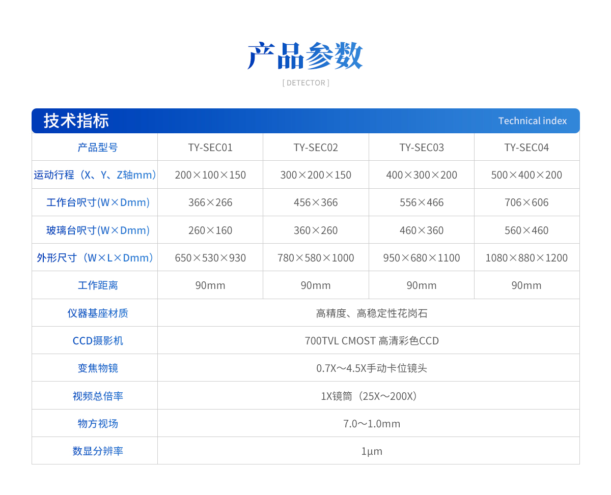 | 高穩(wěn)定性高精度花崗石材質(zhì) | 700TVL COMST模擬信號(hào)相機(jī) | 0、7~4、5 X手動(dòng)卡位鏡頭(萊斯) | 高精度位移傳感電子尺,分辨率:1μm (精微) | 咸陽(yáng)藍(lán)博P級(jí)精密V型導(dǎo)軌(LB) | 西德無(wú)牙光桿精密傳動(dòng)(西德)、高精密T型絲桿(特制) | LED恒流環(huán)形冷光源 | 綠色單顆LED冷光源+雙組透鏡均光平行底光模組 | UWC3200 | DTV 2、5T手動(dòng)影像測(cè)量軟件 | DTV 定制 | AC/DC |