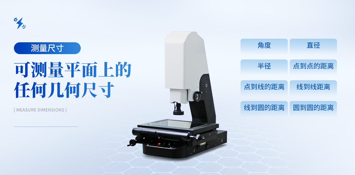 可測(cè)量平面上的任何幾何尺寸(角度、直徑、半徑、點(diǎn)到點(diǎn)的距離、點(diǎn)到線的距離、線到線距離、線到圓的距離、圓到圓的距離等等);